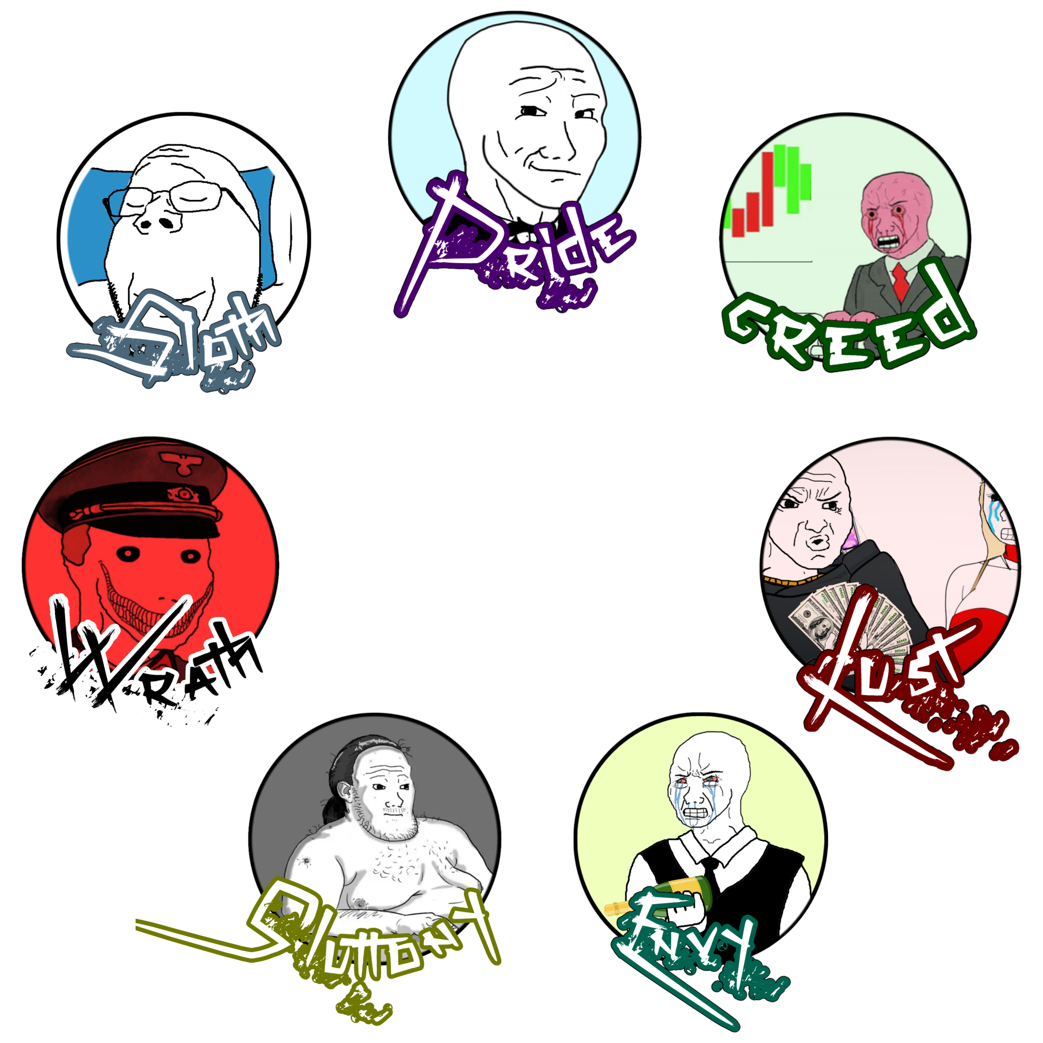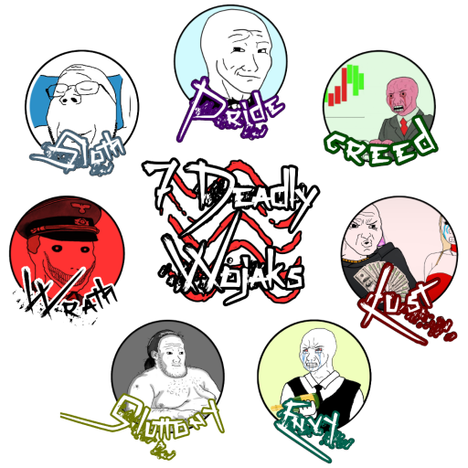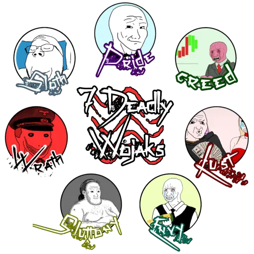 THE SEVEN DEADLY WOJAKS, ALSO KNOWN AS THE CARDINAL WOJAKS, IS A GROUPING AND CLASSIFICATION OF WOJAKS WITHIN DEFI, PARTICULARLY SOLANA BLOCKCHAIN TEACHINGS. ACCORDING TO THE STANDARD LIST, THEY ARE PRIDE, GREED, WRATH, ENVY, LUST, GLUTTONY AND SLOTH, WHICH ARE CONTRARY TO THE SEVEN HEAVENLY VIRTUES.